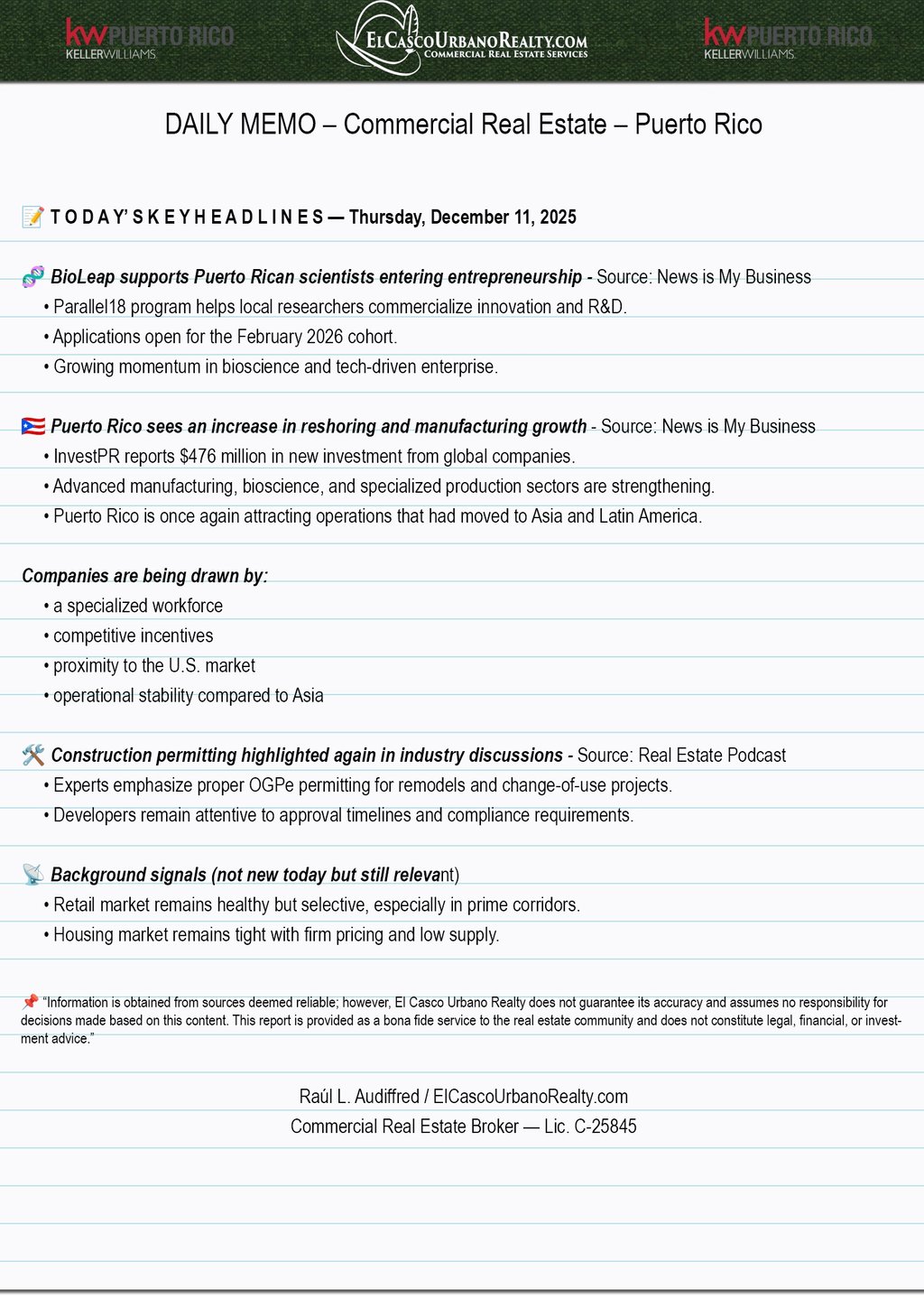 Commercial RE Memo - Puerto Rico - Dec. 11
